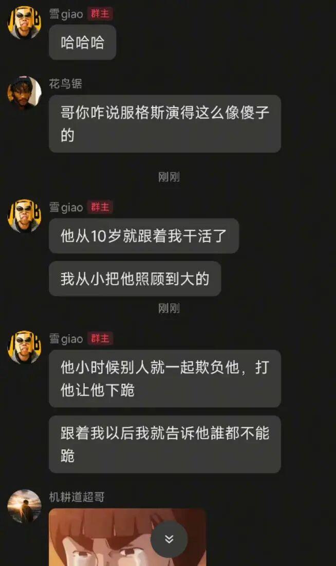 雪giao本人的形象,和野狗差別巨大,他五官端正,會發自己健身的視頻,體格健壯。於是大家調侃說:雪giao,你現在只差像格里菲斯一樣背叛野狗,把他一腳踢開,告訴他,所有這些尊重、名利,都是假的,你只是把他當成一個賺錢的笑話,這樣,野狗就會真正變成格斯了。