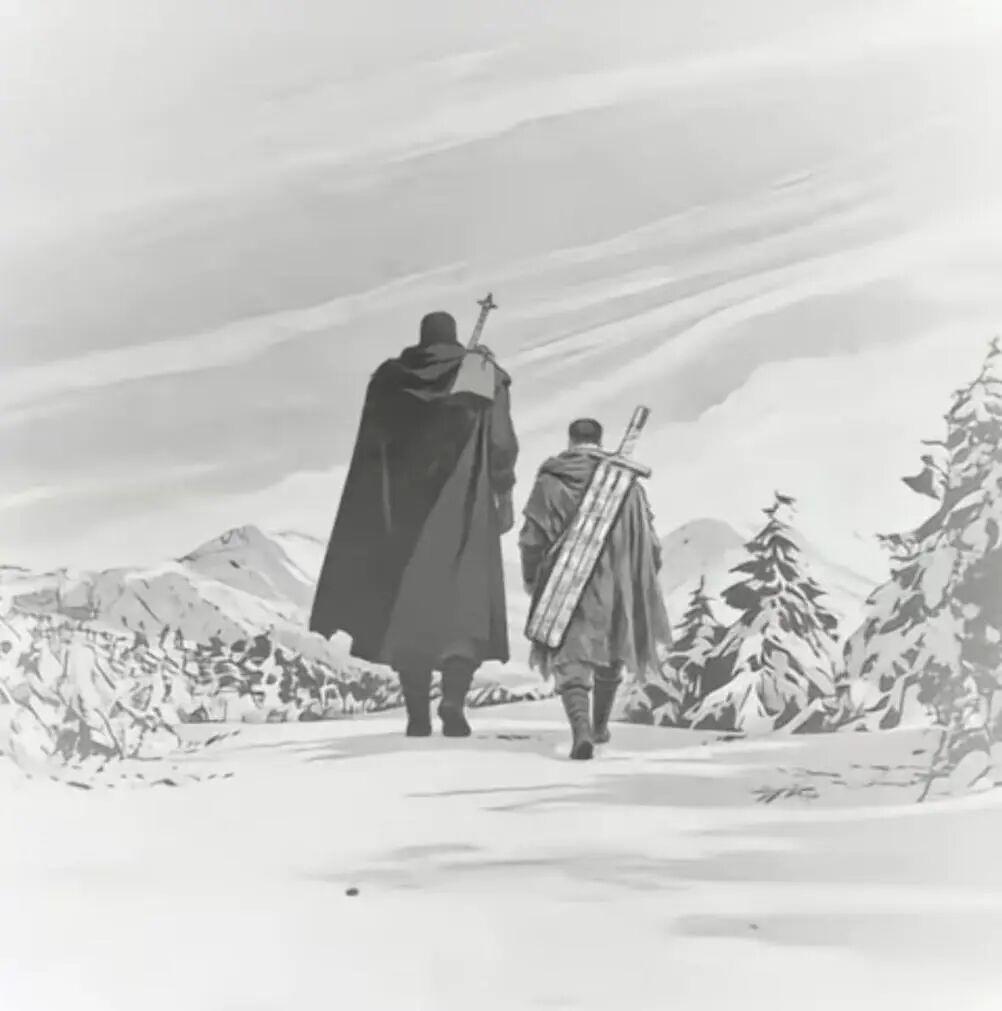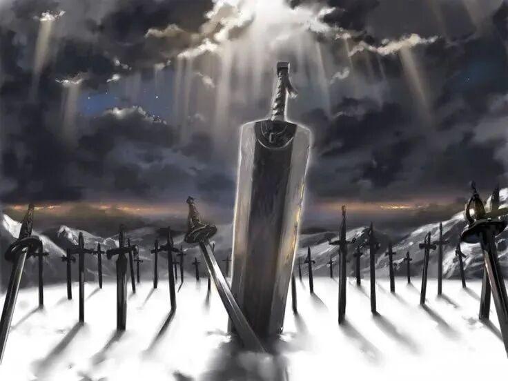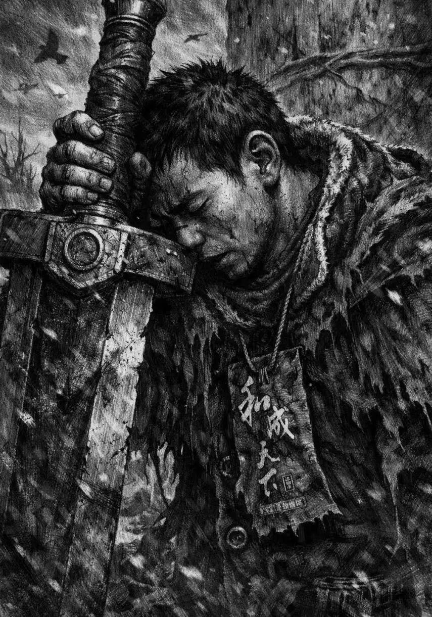 三浦死後,人們紛紛畫下心中的劍風結局。許多同人的最後一幕,都凝固在了那座宛如格魯吉亞聖劍山的丘陵上,遍地的武器中,在霧氣和大雪間,格斯放下了那把他的劍,比所有的故事都要厚重。石頭在震動,泥土沉睡,它們知道有東西帶着血和鏽深入了骨髓,有東西永世長眠。