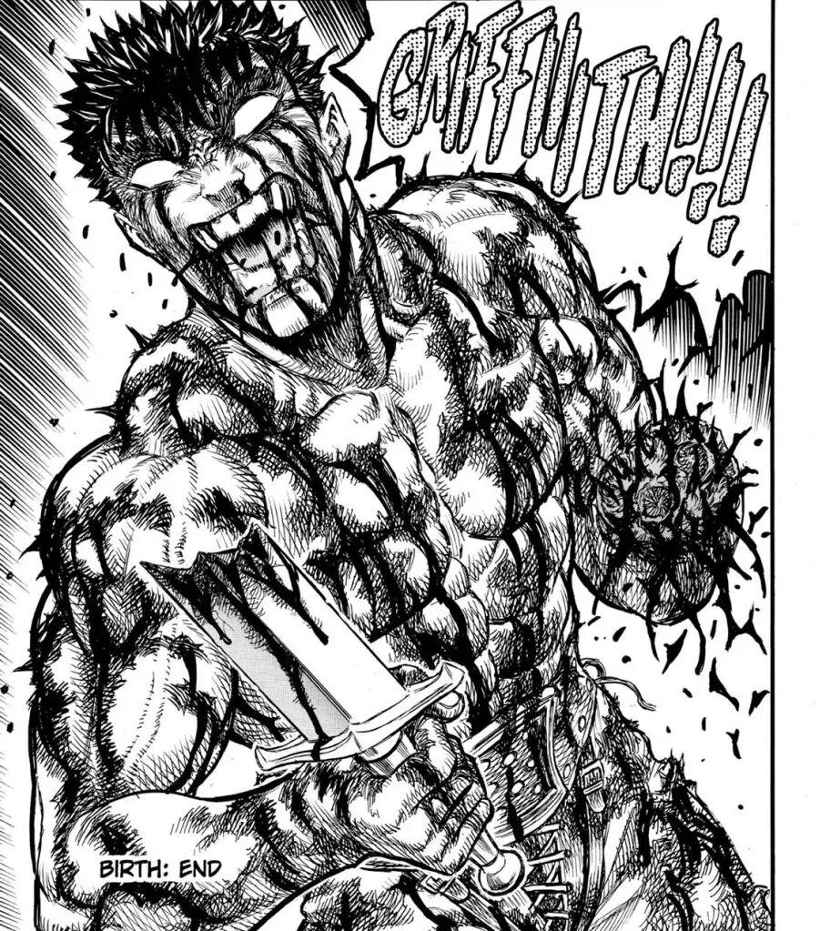後來,他也慢慢有了新同伴,然而當格斯再度對峙格里菲斯時,讀者卻發現那把被無數惡魔之血浸泡的斬龍劍,竟然全力一擊,也只能斬斷格里菲斯的一縷頭髮。於是格斯徹底頹廢了,陷入了絕望,沒人知道故事將走向何方。