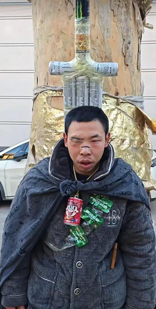 這個月,一個非常特殊的《劍風傳奇》cos在全世界火了。但這cos和精緻完全沾不上邊,相反,它可能是你見過最低成本的cos。如今,以創意爲賣點的惡搞cos已經隨處可見,但這個模仿不僅是靠廉價自制道具完成的,它的coser還是一名小鎮殘疾人。
