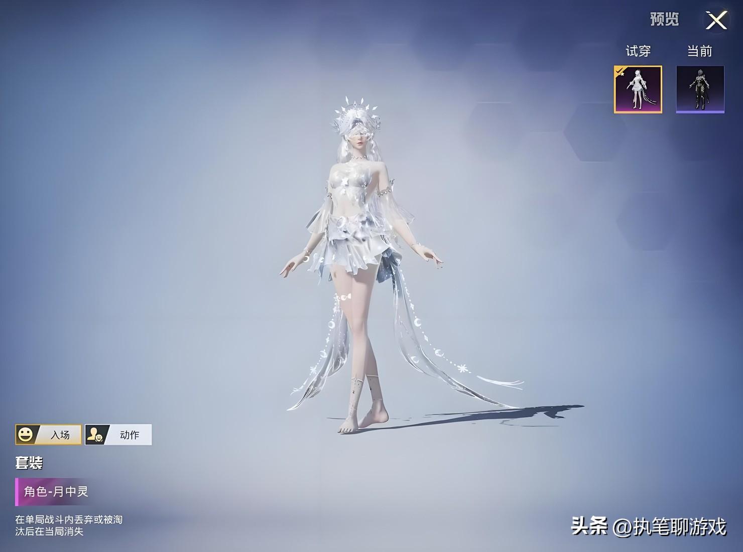 最後登場的第4個美女新角色,被光子命名爲“月中靈”,周身佈滿淡淡月光,鑲嵌月光石,銀髮更是隨風飄動,再加上“羽毛”的裝飾,看起來溫柔婉約,符合《和平精英》大多數玩家的遊戲審美。