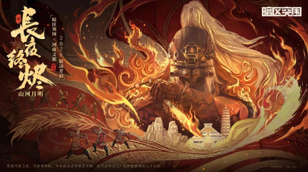 緊接着14號晚上,《暗區突圍》與河南春晚的共創節目《長夜終燼》登臺演出,節目以遊戲最新國風甲冑「長夜將軍」爲核心視覺載體,把硬核軍武美學和現代數字藝術融合在一起,給觀衆帶來一場新鮮的視覺盛宴。