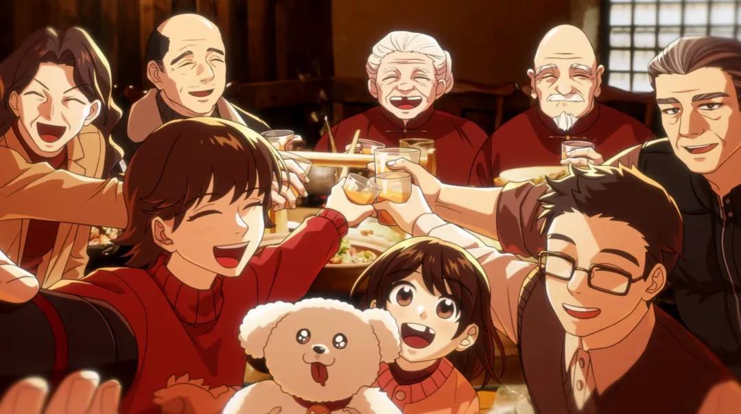 如果你覺得難理解,不妨想象:假設齊司禮的年夜飯卡面,只有兩人做飯的主視覺畫面,沒有背景那些擺桌、食客,或許你只會覺得“這人挺會做飯的”,而有了羣像故事的加持,你才更可能瞬間反應過來“這做的是年夜飯”。