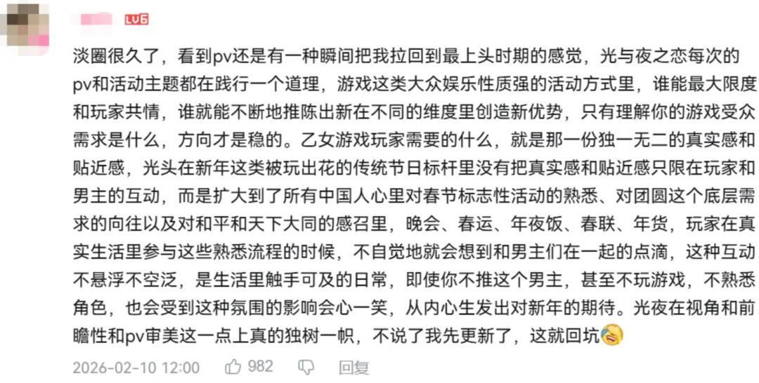 像今年,就有玩家評論,說自己在《光與夜之戀(下稱光夜)》新春活動「新活動,馬上好」中找到了年味兒。