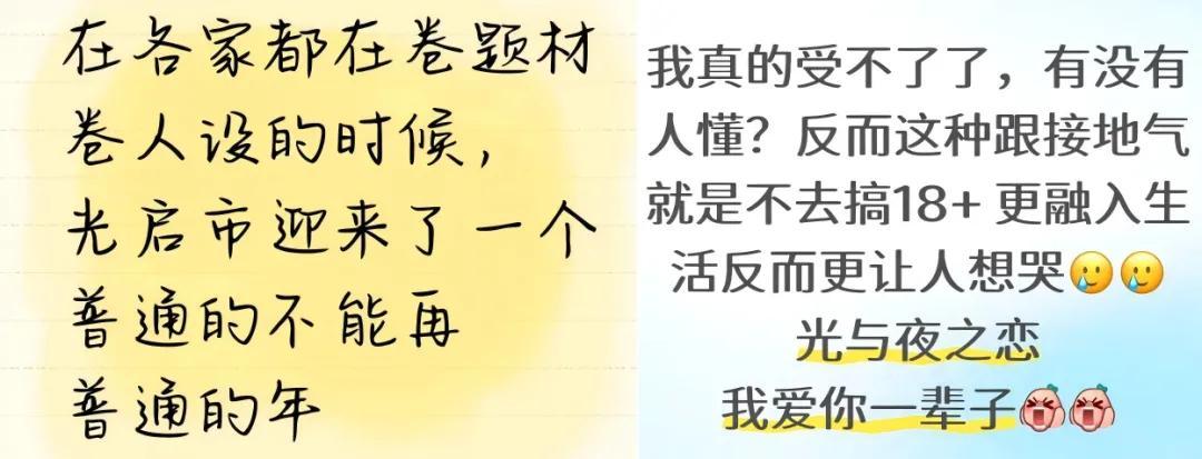 人生總是百感交集,《光夜》把戀愛的甜蜜作爲核心,但沒有忽視與甜蜜同行的五味雜陳,畢竟現實的人生就是百感交集。若用戲劇比喻,《光夜》不像二人傳,更像有主角、主題的羣像劇;若用影視比喻,它不會只製作讓人一時爽的爆米花電影,而是也能做出綿長有深度的劇情片。