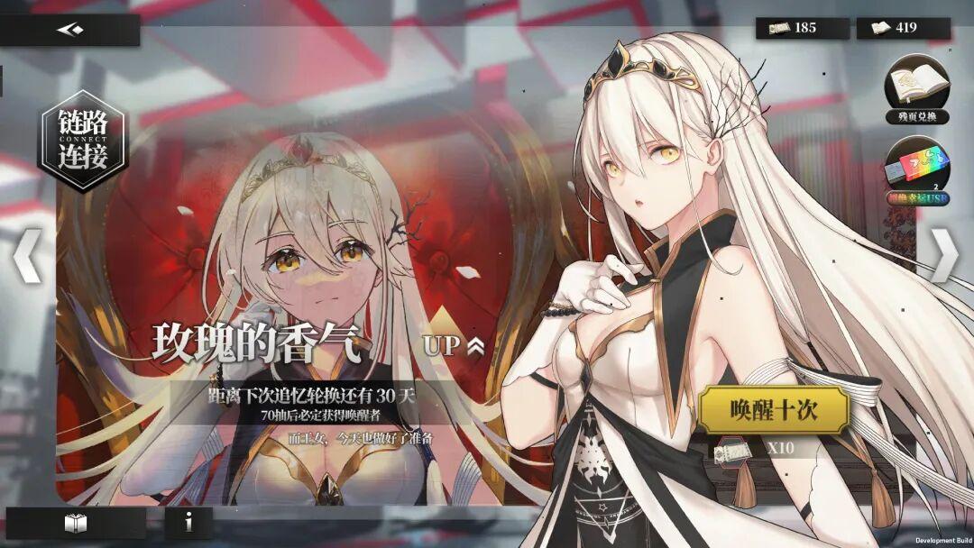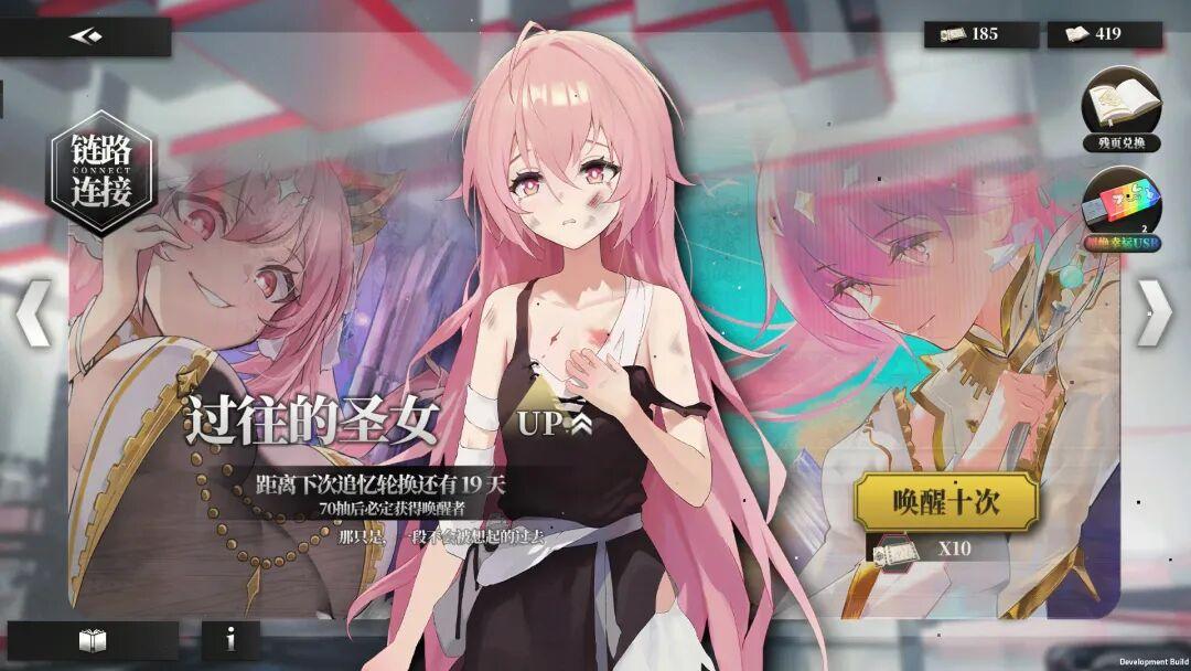 抽卡系統當然是最先抓眼球的部分。你打開遊戲,映入眼簾的是熟悉的“喚醒”(抽卡)界面,點進去就是熟悉的十連界面,單抽、十連、保底、兌換所,一應俱全,連“月卡”和“648”都有,只不過全是遊戲內資源兌換,不需要花真錢。