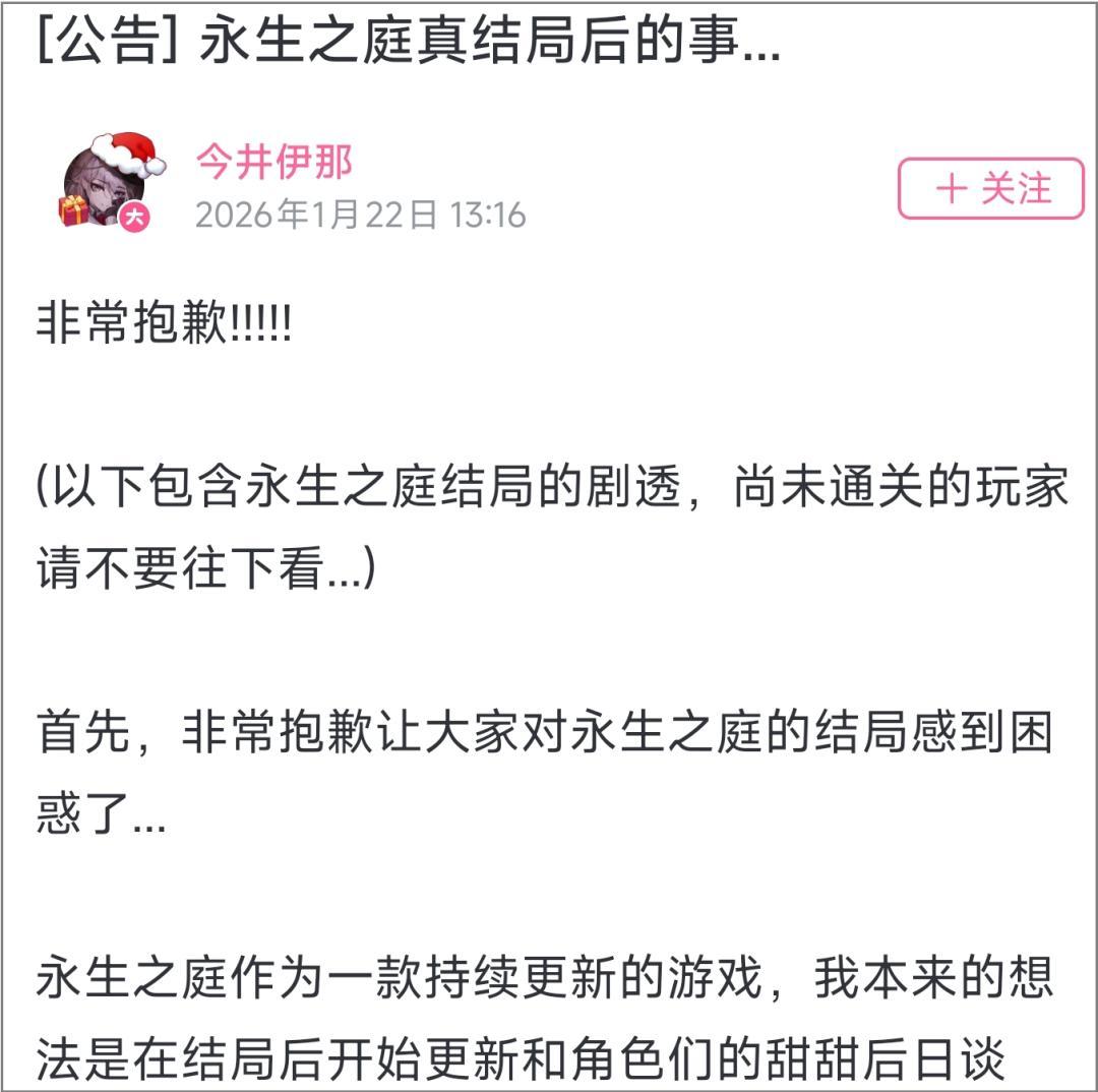 但《永生之庭》埋下的雷,不止有劇情爭議。爲一款不知道能不能算作二遊的遊戲,《永生之庭》的場外節奏,比遊戲本身還要精彩,也更能反映出當下二遊社區裏,開發者與玩家之間那種微妙又脆弱的關係。