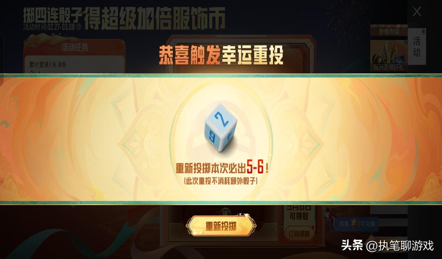 除了像素風的湯姆遜外,光子又開啓了新一輪的“擲骰子”,此次的獎勵均爲服飾幣,假設四次均投出6點的話,那麼最高就是1296個服飾幣。