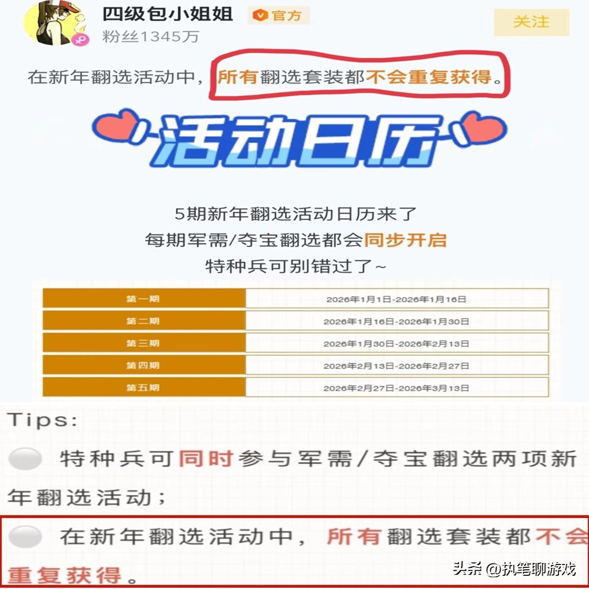 在光子當時公佈的“翻牌”規則上,明確說明此次翻選套裝都不會重複獲得,然而經歷五期的返場後,細心的玩家卻發現了重複的情況。