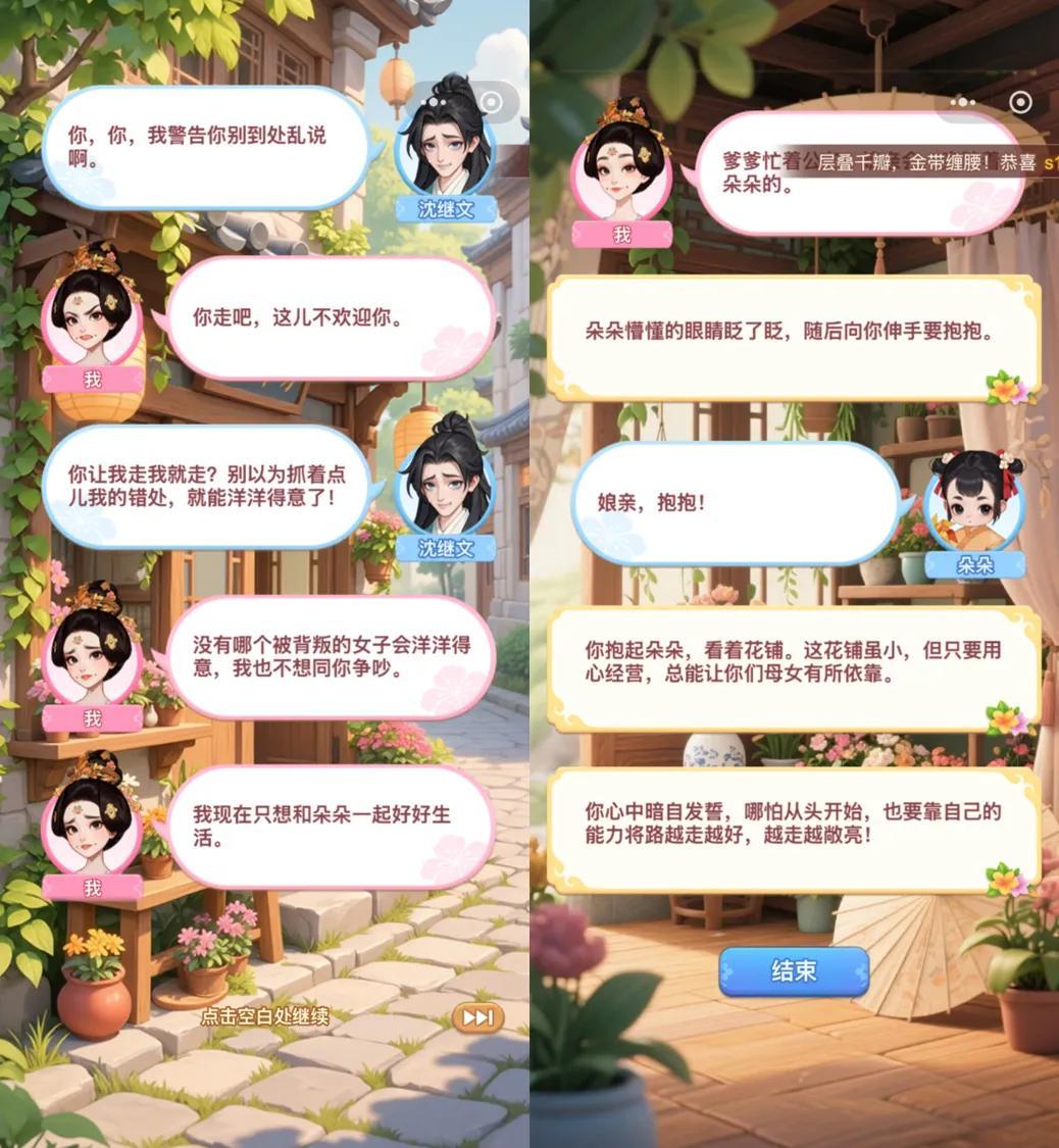 同時,遊戲的整體劇情包裝,也是爽文女主逆襲的戲碼:女主發現丈夫出軌後,毅然和離,帶着女兒獨自開花店。
