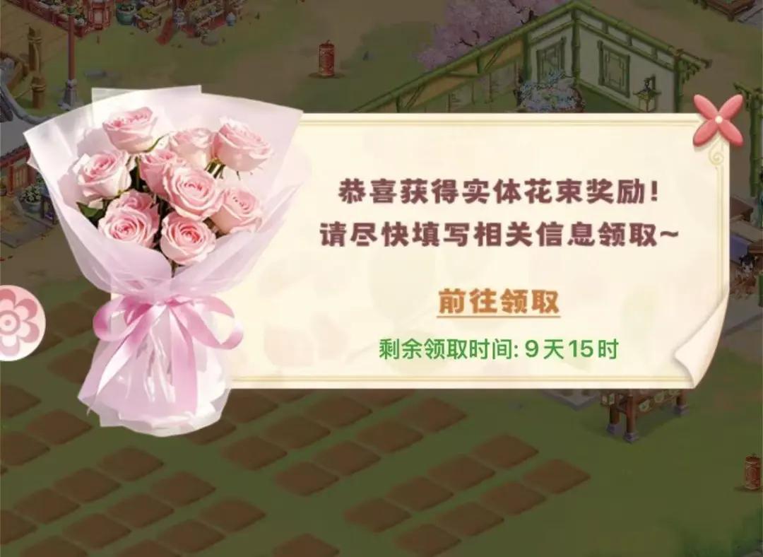 當時,遊戲弄了一個頗爲新穎的營銷活動,叫“玩遊戲,得真花”。顧名思義,玩家在遊戲裏收穫鮮花,會隨機掉落花卉卡,填寫地址後,就可以在現實中收穫真花快遞。