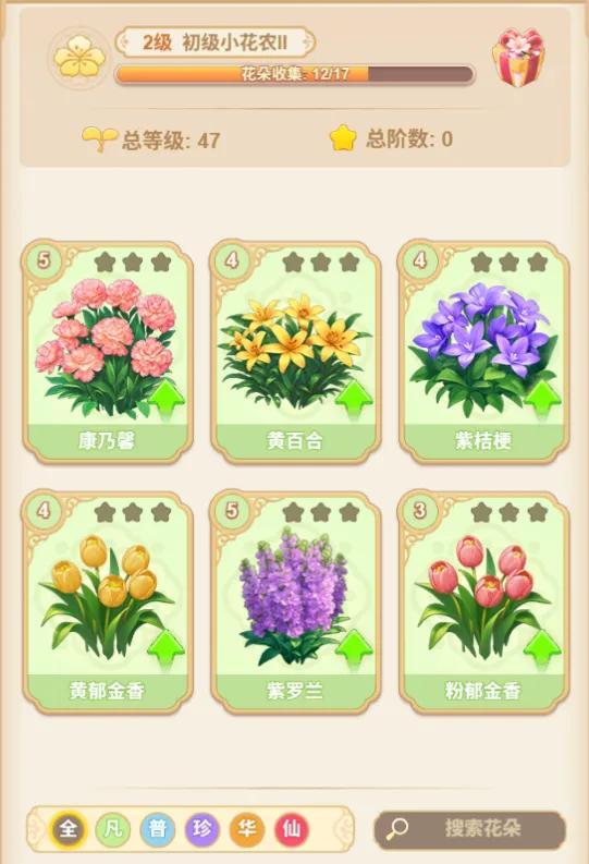 想要獲得花靈,你還需要副花與精靈花(主花)搭配種植,而副花又分爲不同品質,其中橙色與紫色品質的禮包需要氪金購買。