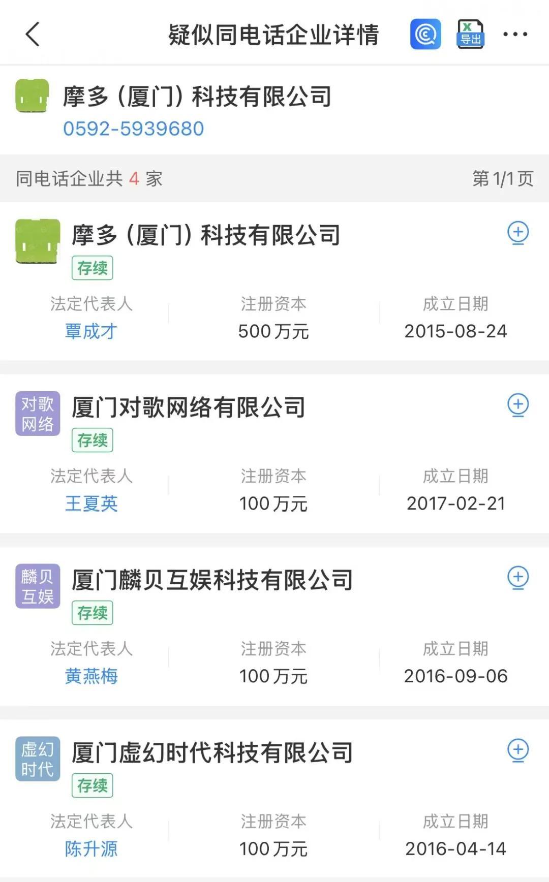 更深一層的聯繫是,企查查顯示,摩多科技2020年提報的企業聯繫電話,與麟貝互娛疑似一致。且麟貝互娛的歷史股東馬興巧的持股比例曾達到100%,而摩多科技有位股東名叫馬興森。