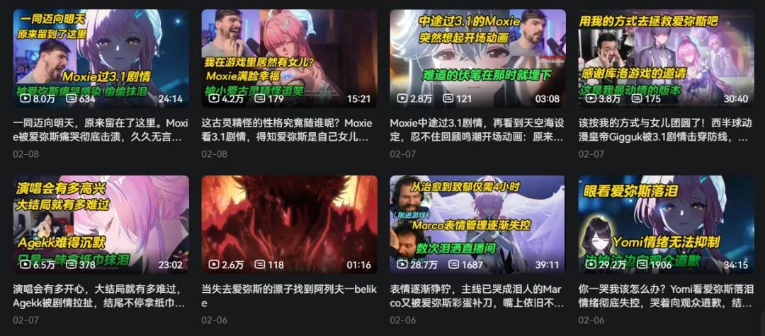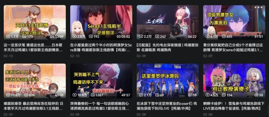 算下來,還真的只有二遊可以42天一個大版本,長期穩定地提供高品質劇情演出。更別說虛擬主播本就和二次元共通,聞名而來的二遊粉絲,是很容易積累下來變成核心觀衆的。
