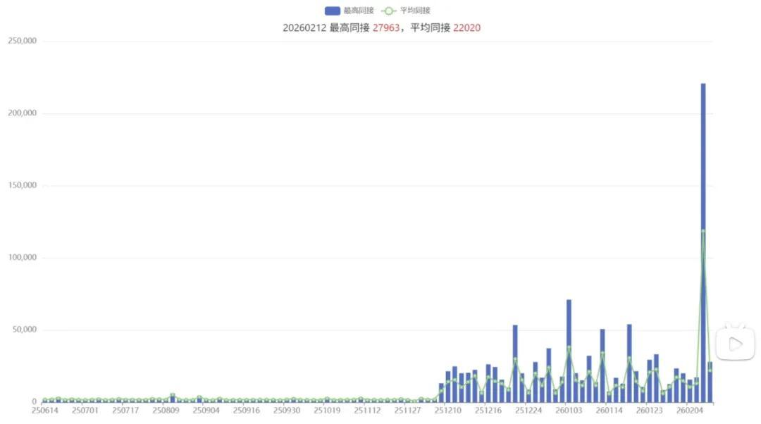 這裏給不瞭解“同接”這個概念的朋友解釋下:同接指同時接入,代指直播間裏有最低限度觀看/互動行爲的觀衆數量,換句話說,就是不太能摻水的人頭數、實打實的熱度。