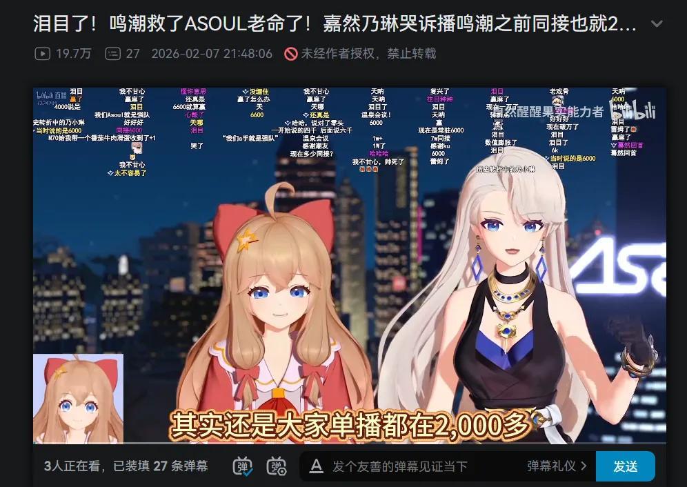在乃琳和《鳴潮》創造歷史之後,很多虛擬主播接連開播並不奇怪,是個主播就會被流量吸引,何況是這樣盛況空前的大流量呢。