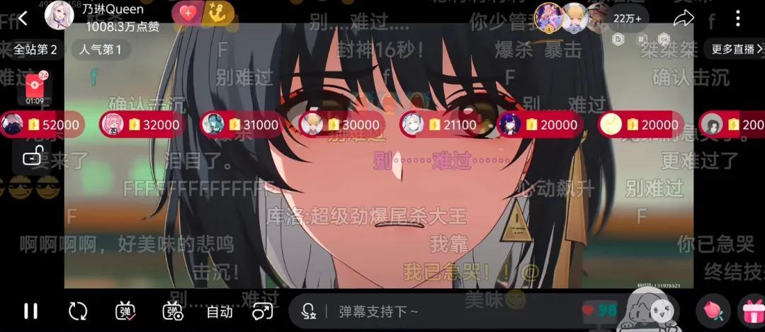 第二是乃琳作爲主播,對遊戲內容本身有很好的理解和尊重,對直播間的控場節奏也很穩。過重要劇情時,停止謝禮物、專心看劇情是基本操作,在與一大批彈幕互動的同時,還能得體地應對串子和各種梗,就很考驗直播功力了。