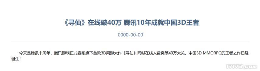 公測滿月時,遊戲同時在線人數更是突破40萬大關。騰訊也特意發文官宣這一亮眼成績,彼時的《尋仙》一舉創下紀錄,成爲當時國產3D MMORPG領域在線人數最高的遊戲。