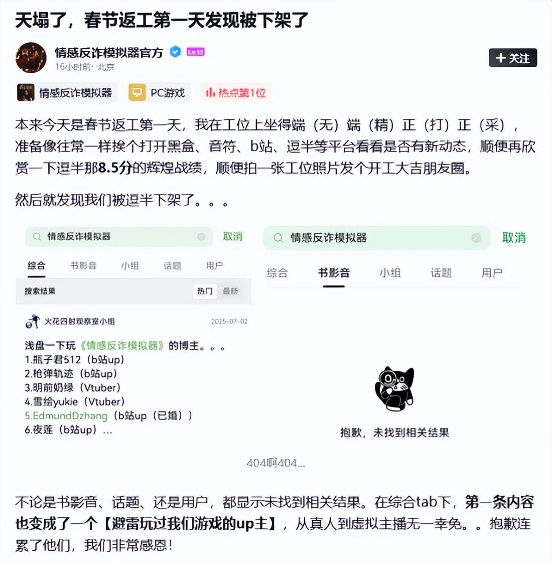 劃重點:《情感反詐模擬器》突遭豆瓣下架,官方稱“完全想不通下架原因”