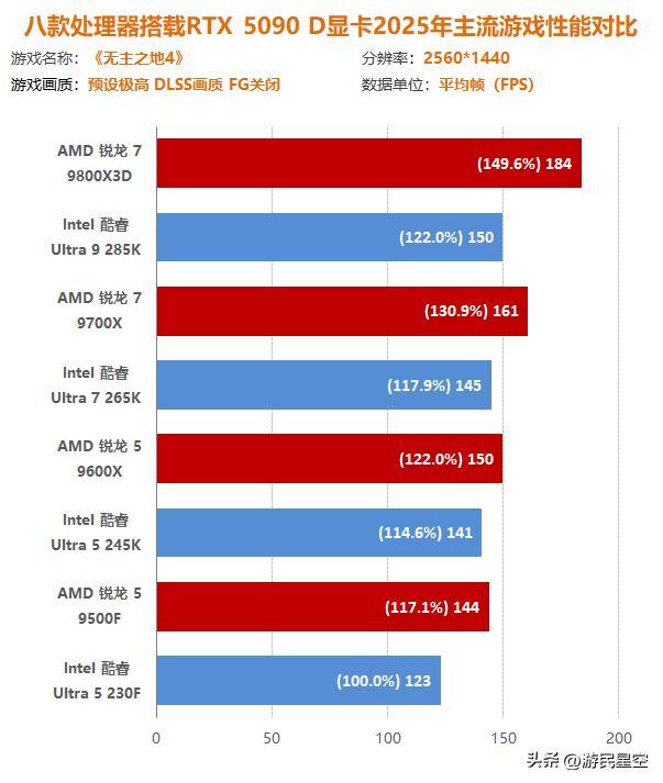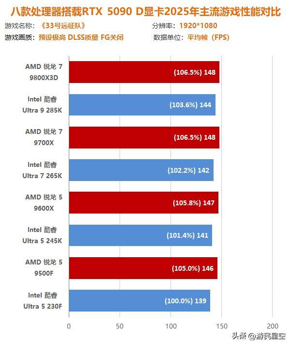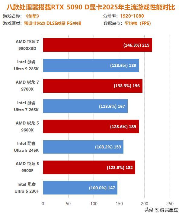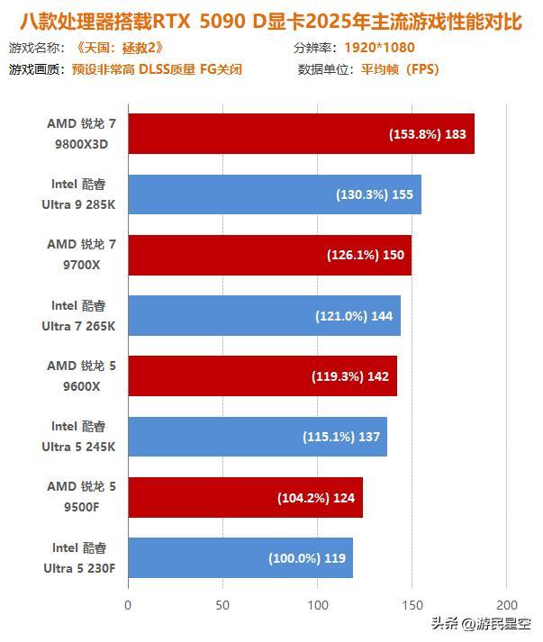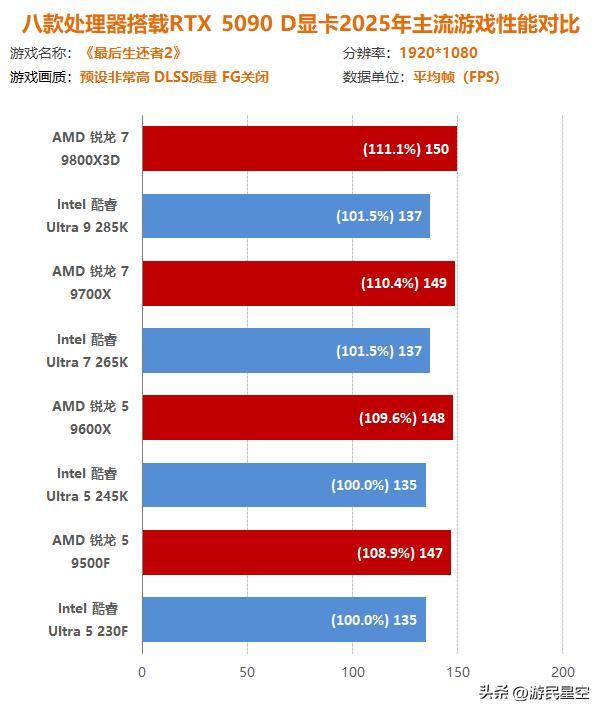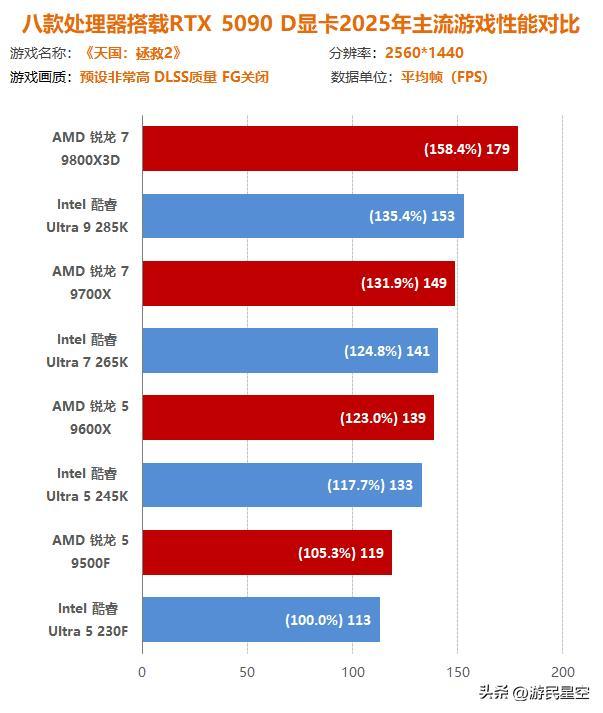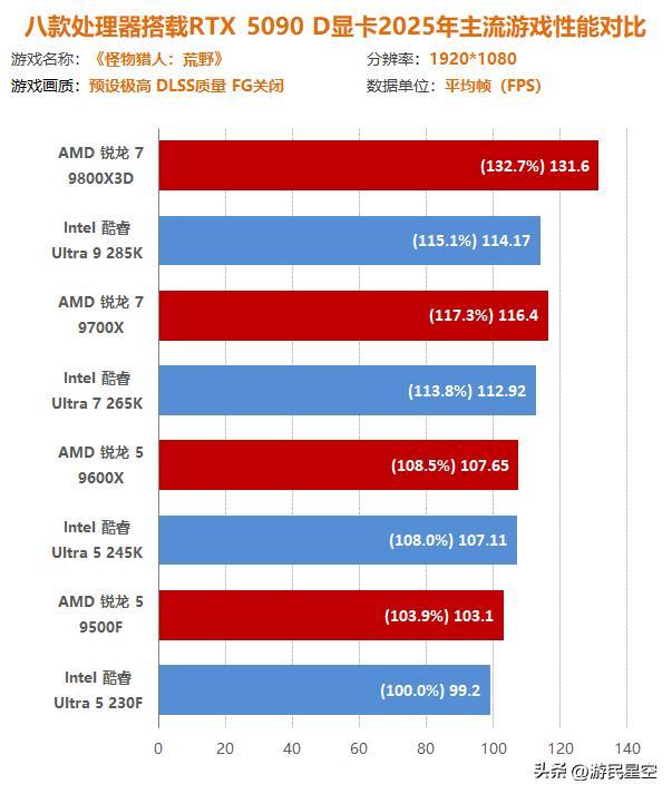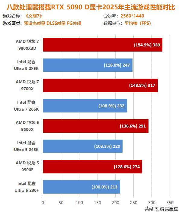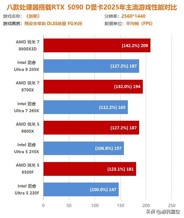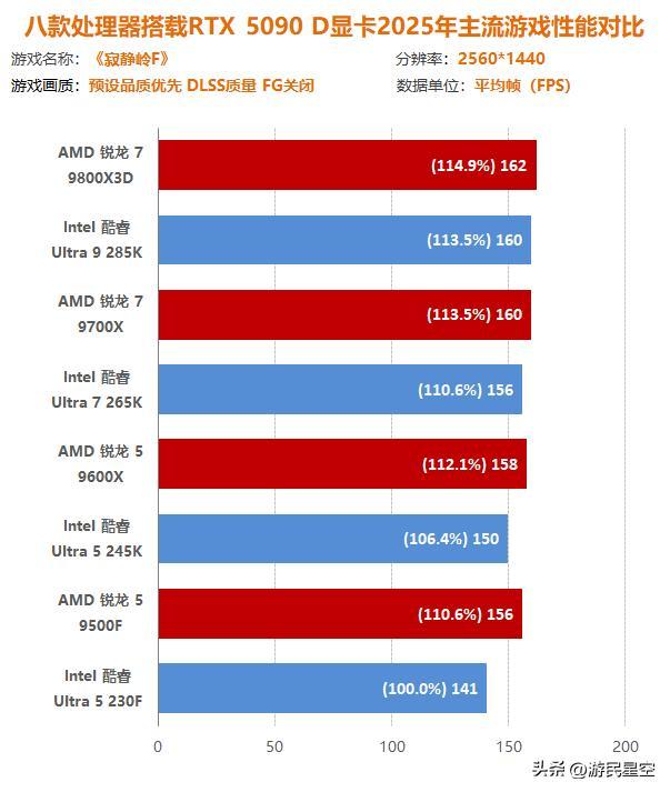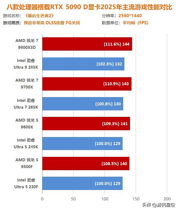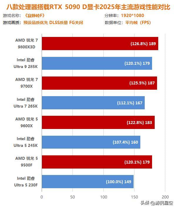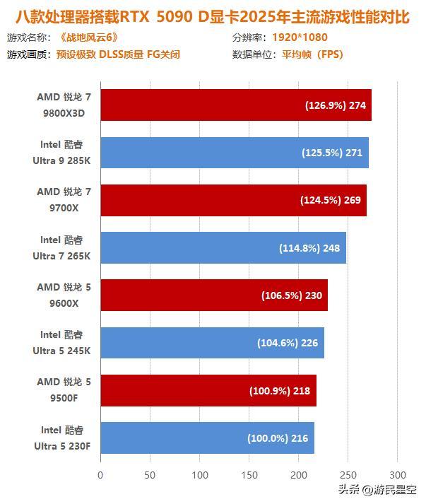 通過本次銳龍7 9800X3D到銳龍5 9500F四款主流/高端的AMD處理器與酷睿Ultra 9 285K到酷睿Ultra 5 230F四款主流/高端的Intel處理器與十二款2025年主流遊戲大作交叉對比測試可以發現,在最新一代處理器中,AMD處理器在遊戲方面有着得天獨厚的優勢,不僅可以實現同定位下性能碾壓,而且越級吊打也如家常便飯。