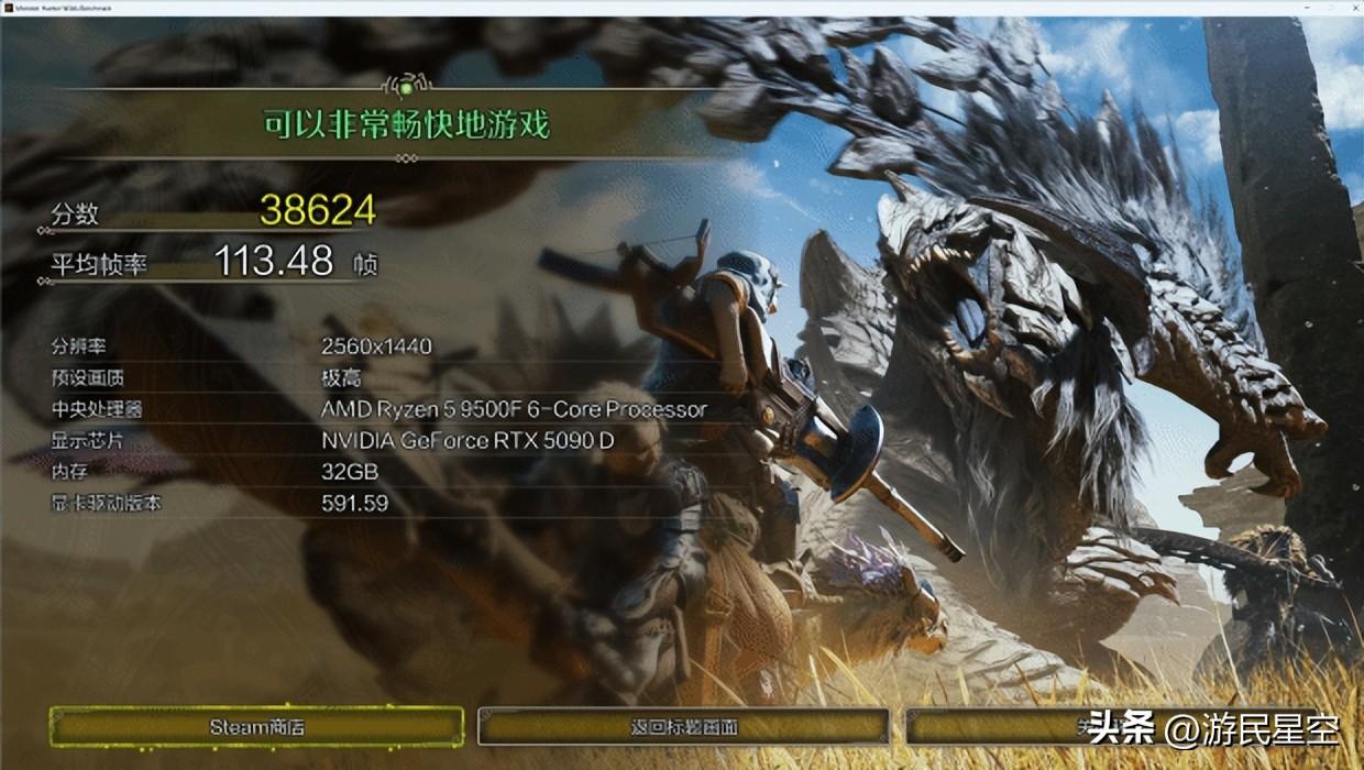 《怪物獵人:荒野》擁有用於硬件性能評估的基準測試程序,這裏我們直接用其自帶的基準測試程序作爲本次性能測試的場景。