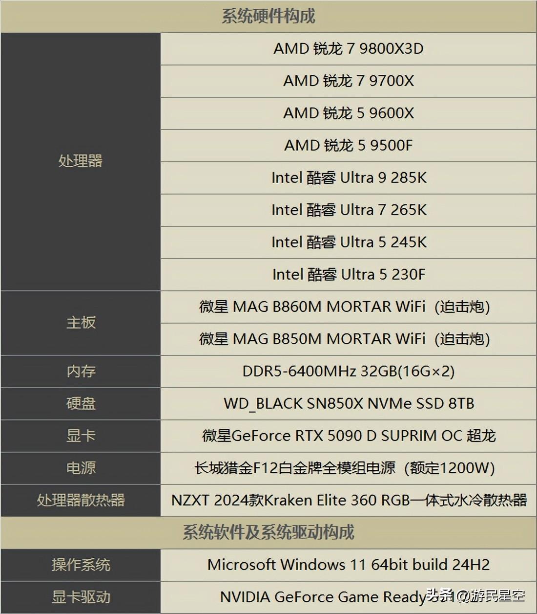 本次我們選擇了十二款2025年的主流遊戲大作,通過採用從銳龍7 9800X3D到銳龍5 9500F四款主流/高端的AMD處理器與酷睿Ultra 9 285K到酷睿Ultra 5 230F四款主流/高端的Intel處理器進行對比測試,看看在實際遊戲中,哪款處理器才能給予玩家更強的性能與更出色的遊戲體驗。