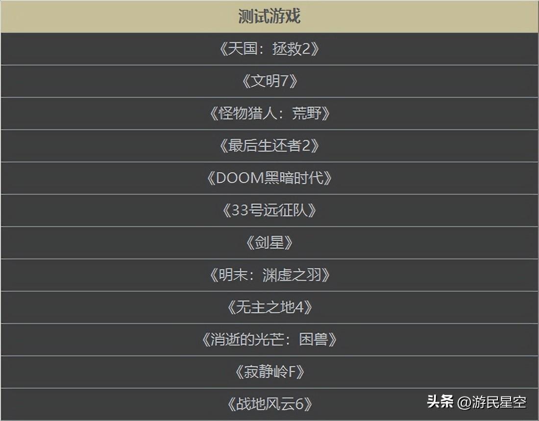 測試遊戲選擇了十二款2025年主流的遊戲大作,按發佈時間的先後順序依次是《天國:拯救2》、《文明7》、《怪物獵人:荒野》、《最後生還者2》、《DOOM黑暗時代》、《光與影:33號遠征隊》、《劍星》、《明末:淵虛之羽》、《無主之地4》、《消逝的光芒:困獸》、《寂靜嶺F》與《戰地風雲6》,測試顯卡採用微星GeForce RTX 5090 D SUPRIM OC 超龍,測試分辨率選擇1920×1080(1080p)和2560*1440(2K),取平均FPS。