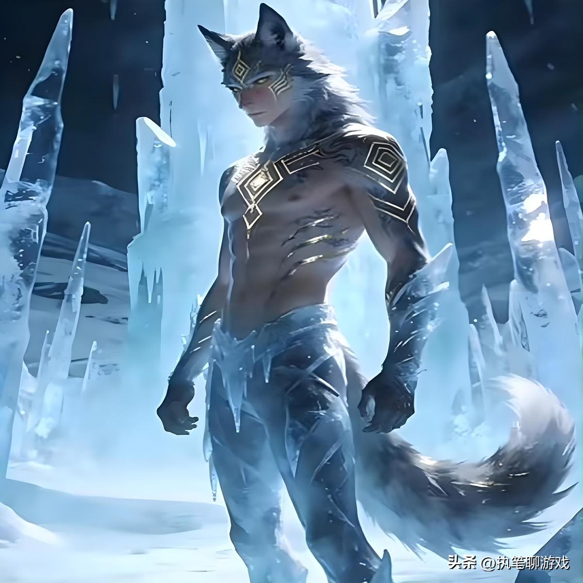 最後的第三個“模板”,還真是讓天哥眼前一亮,這種風格比較符合雙形態的設計,狼人、狼尾、冰霜等特效都出現了,而且最關鍵的還有“光膀子”顯現腹肌的模樣。