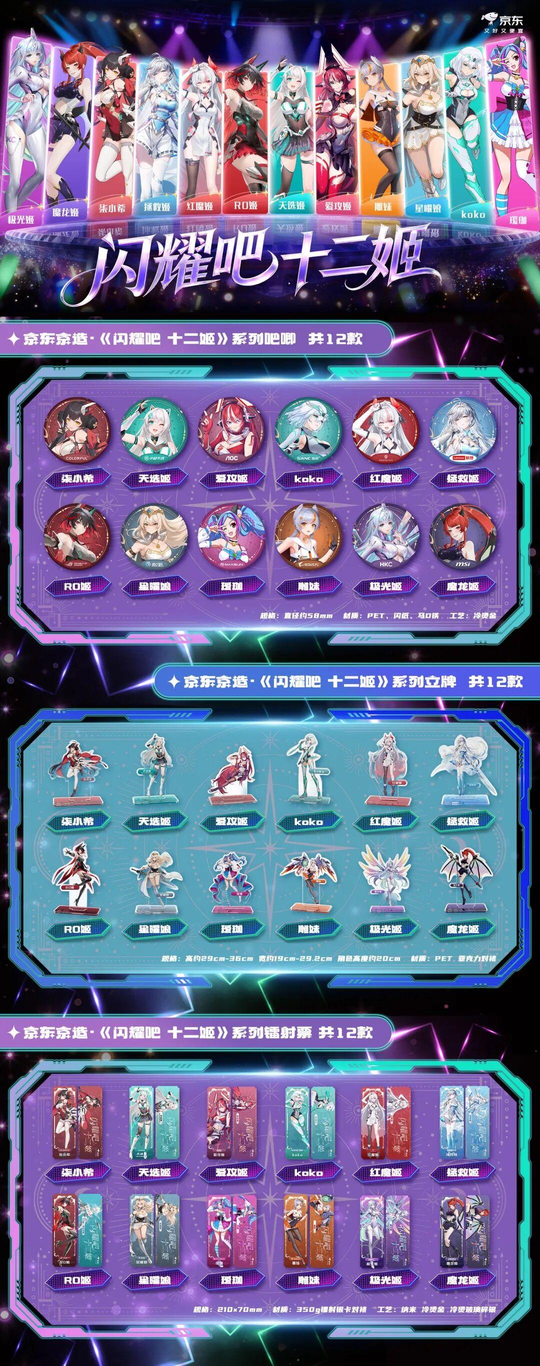 京東京造的自營店鋪還新設了一個周邊區,裏面都是12位偶像的吧唧、立牌、鐳射紀念票等穀子,跟機箱和顯示器擺在一起,打造自己的DIY裝機痛桌——咱提個建議,廠商們以後賣產品也送一點「十二姬」穀子唄。