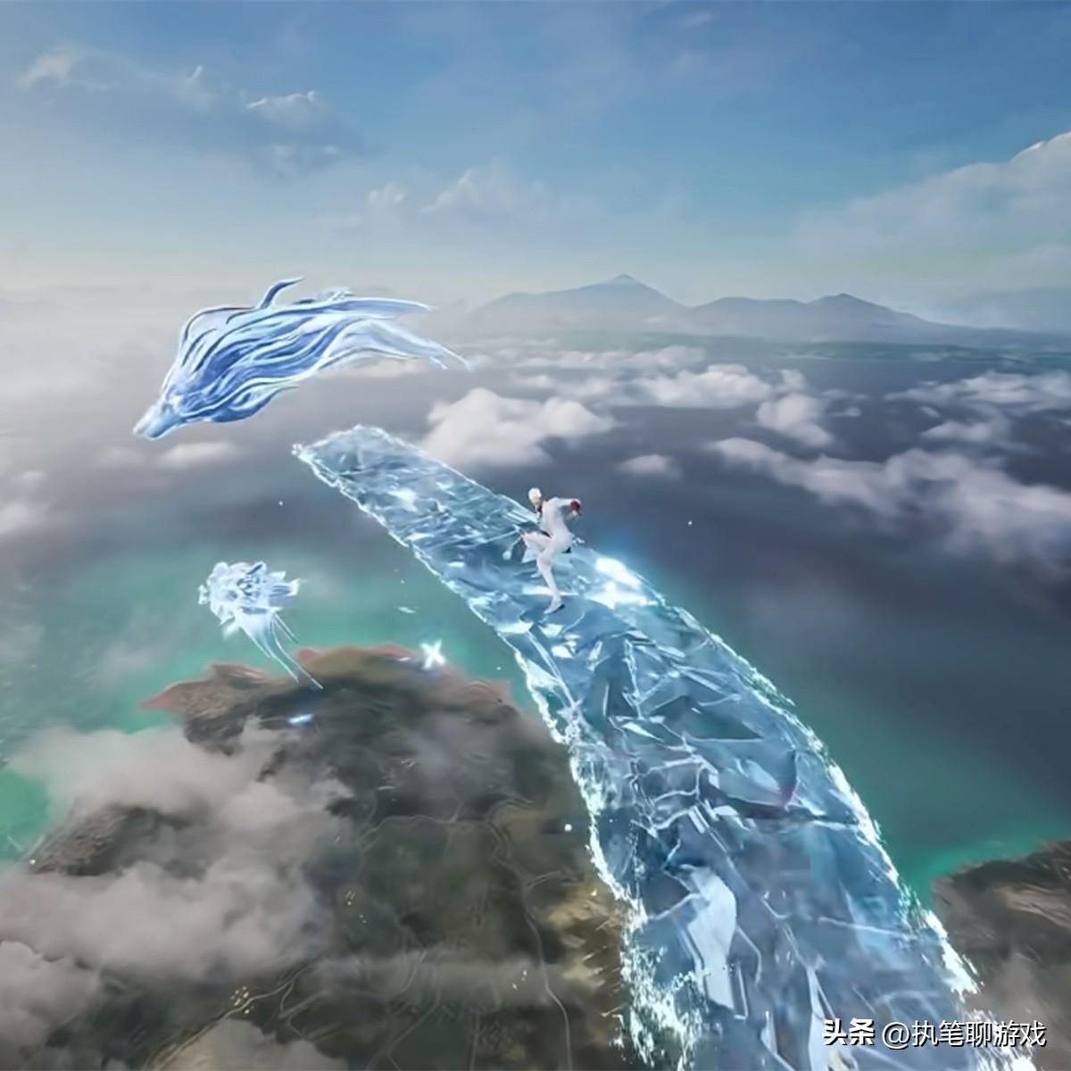 最後來看一下飛行器的遊戲裏表現吧,天空中會出現冰霜構成的冰河,“狼靈”圍繞旋轉,人物角色以“滑行”的姿態,看起來像是在溜冰一樣,雖然看起來挺炫酷,但卻沒有足夠的亮點,只能說是普普通通吧~