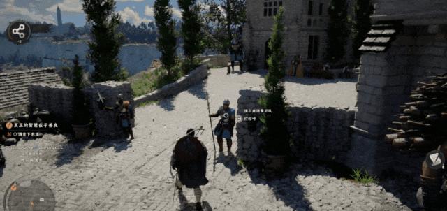 再比如第一章的小鎮場景,展現了遊戲豐富的人文生態。城中守衛、女傭、貴族、乞丐、小孩等都符合設定、各司其職。主角想進城會被守衛阻攔,跟NPC打招呼還句句有回應,街上的貓狗也能擼。