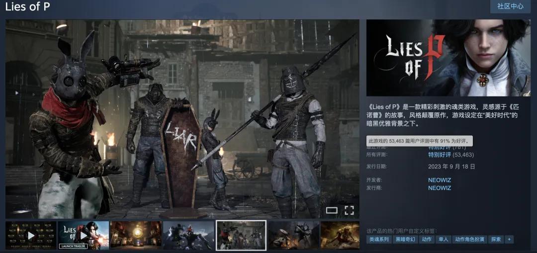 推出過《穿越火線》《戰地之王》《棕色塵埃》等網遊的大廠Neowiz,在2023年就上線了《匹諾曹的謊言》,遊戲首月銷量破百萬,拿下了TGA提名,證明了韓國人也能做好硬核單機;