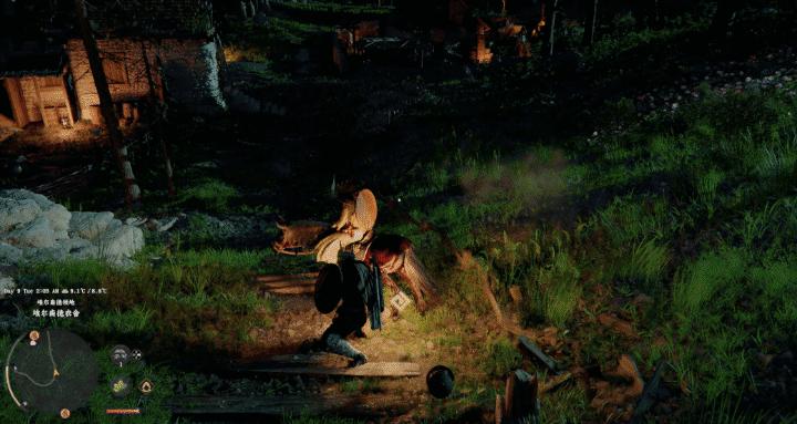 哪怕是路邊的一盞燈,都有點燃、熄滅、攀附、刺擊等七八種交互。剛開始我還不理解爲什麼這麼複雜,直到我正走着路,突然亂按跳到了燈上,點了火,刺塌了燈,把自己摔在地上,懵了幾秒,我才意識到:只要機制足夠複雜,玩家總能找出各種“精神狀態不太正常”的樂子玩法,這本身就是極強的話題傳播點(類似《天國:拯救2》)。