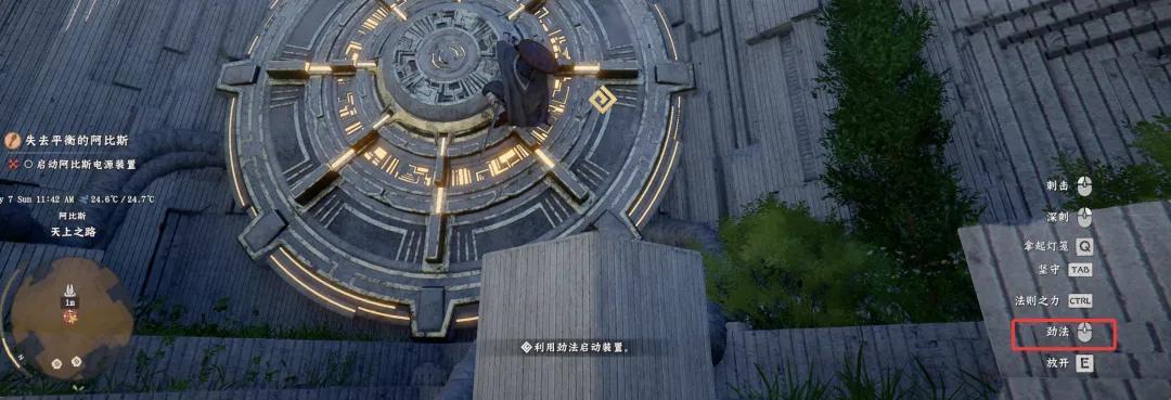這個是最讓人絕望的引導之一,提示“利用勁法啓動裝置”,找了十幾分鍾,啓動裝置是什麼,勁法是什麼,怎麼用……最後策劃告訴我,要扒在圓盤上使用勁法纔行