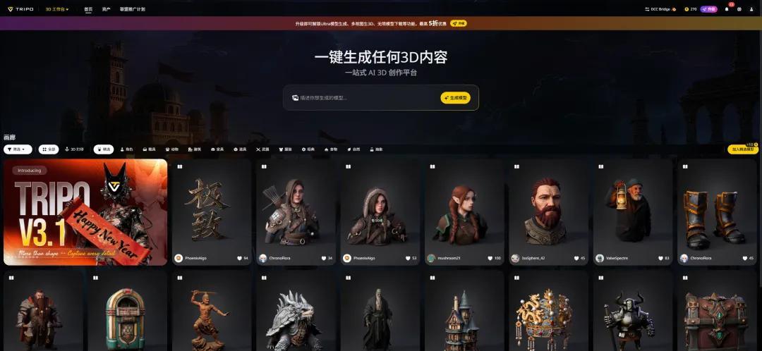 而實現這個效果的,還只是Tripo 3.0版本,並非最新迭代的3.1版本。