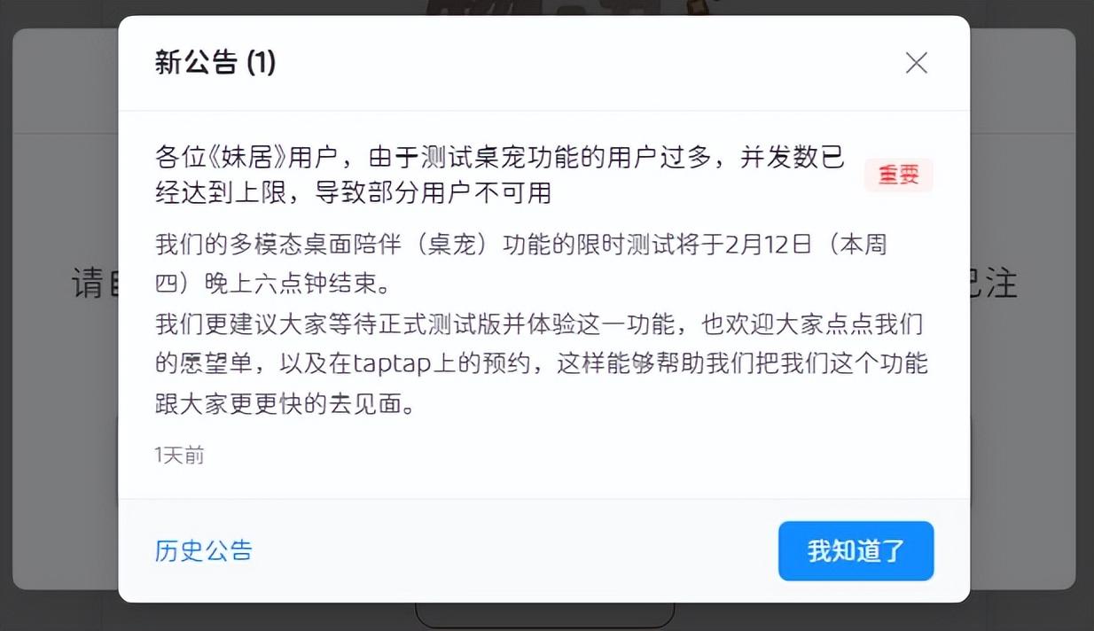 直到今年二月,一次關鍵更新讓它爆火出圈——《妹居物語》開啓了桌寵陪玩模式測試。