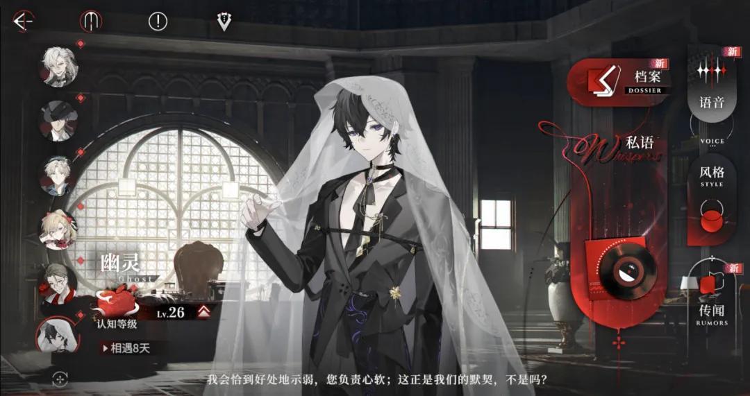 在大廳的頁面中,「幽靈」會有一句極具代表性的發言:「我會恰到好處地示弱,您負責心軟;這正是我們的默契,不是嗎?」