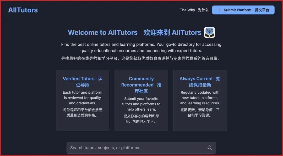 舉個例子,有一個網站叫AllTutors(Tutor就是導師的意思),首頁乍一看是個正經的教育網站——找家教和學習資料用的。