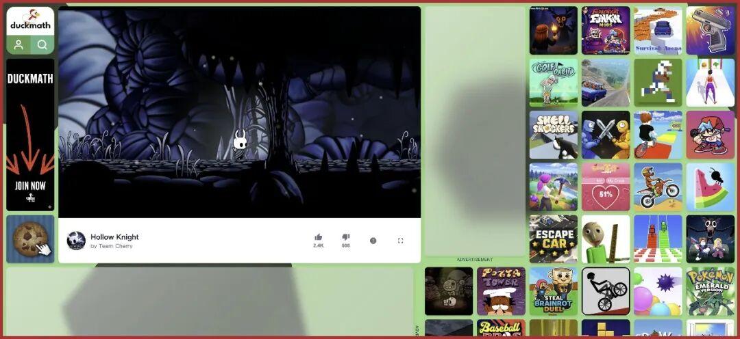 裏面全是網頁小遊戲,甚至還有在線版《空洞騎士》Demo!雖然只有開頭的幾張地圖,但對小孩來說已經足夠爽玩了。