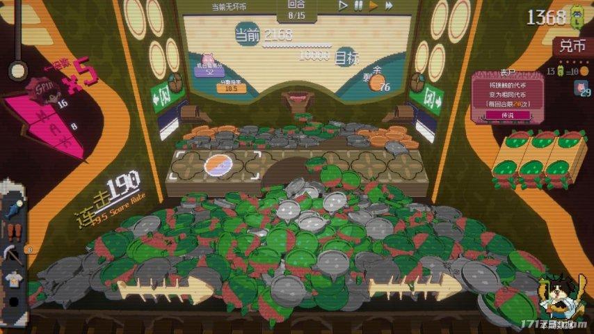 《浣熊推幣機》是一款像素畫風的仿街機推金幣類型遊戲,融合Roguelike元素。