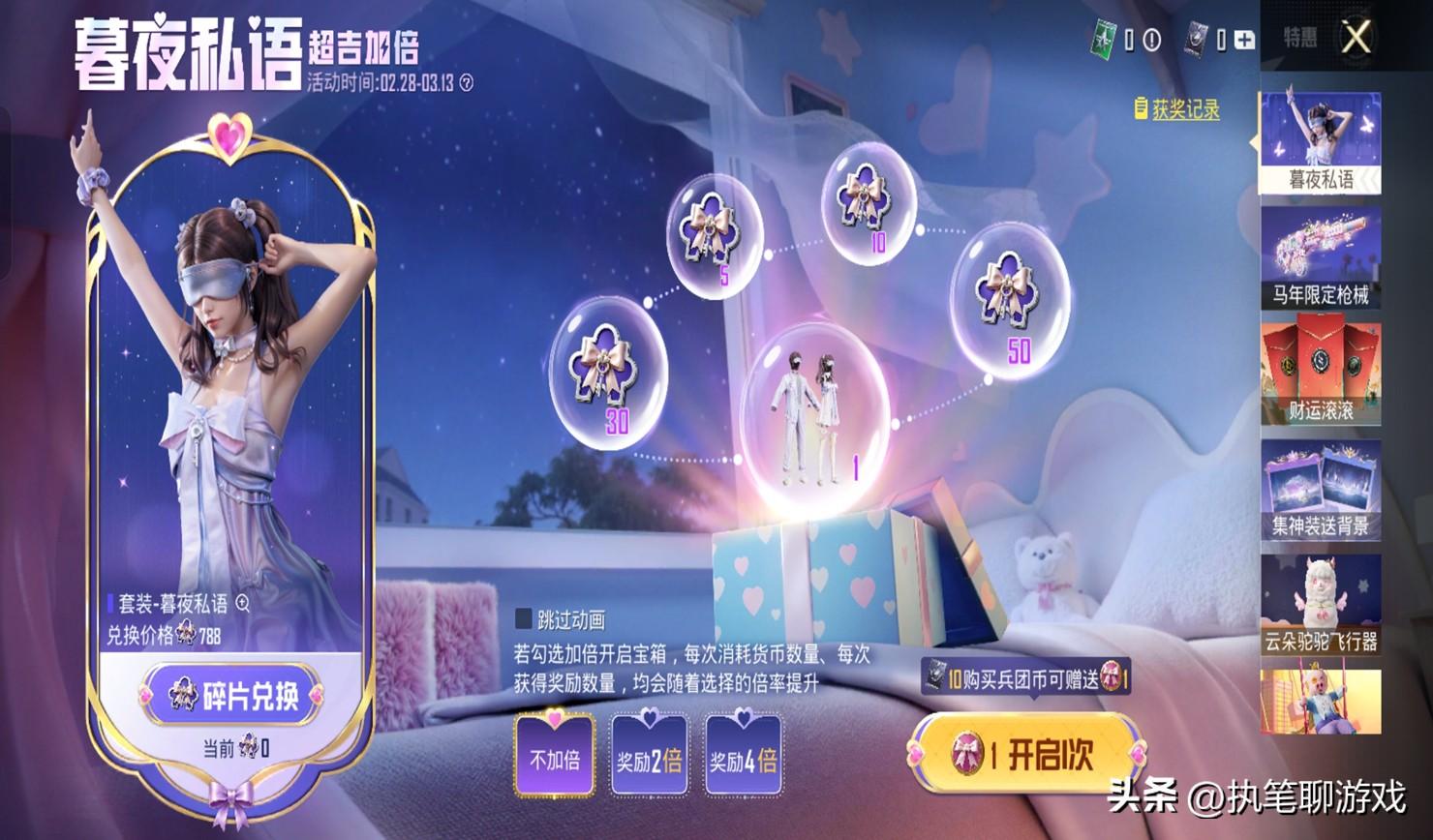 最後的第3個 倒計時來自特惠,被光子命名爲“暮夜私語”,將會在3.13正式下架~不出意外的話,周6則會被光子無縫銜接,帶來全新的特惠系列,要麼是寶箱,要麼是小轉盤,你們懂~
