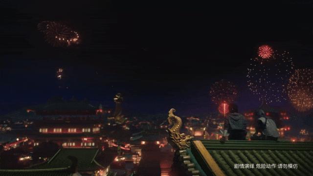 這些考究的場景打造不僅僅是“背景板”,《想去你的2026》中許多劇情都架設在對應場景特有玩法上,與遊戲深度綁定。例如易澤在比賽中快速擊殺對手所持的“大漠雙刀”,就是春節新版本“敦煌地圖”纔有的全新主題道具;而易澤與韓澈師徒交流時看的煙花,也和遊戲裏“敦煌地圖”中是一致的。