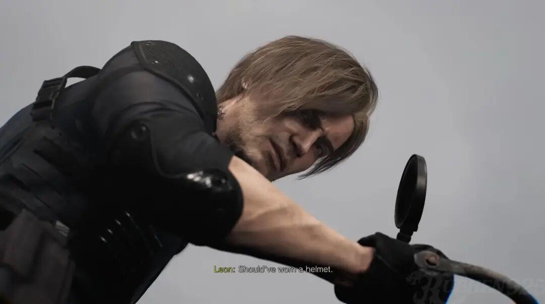 這些臺詞構成了里昂的特質,在9代的摩托對決中,他將反派送下懸崖後,冷冷嘲笑一句:這就是你不戴頭盔的下場。