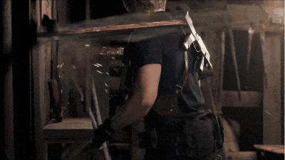 在動畫電影《生化危機:詛咒》裏,里昂彈盡糧絕,面對狂奔而來的超級暴君,只是眼神堅毅地拔出了僅剩的小刀。那時我們都以爲里昂是個不屈服的漢子被感動,直到14年後,大家才意識到原來他是真能用刀彈反。
