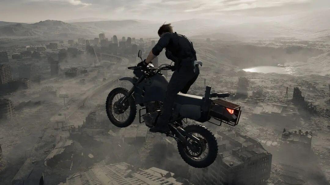 在《鬼泣3》中,但丁幹過一模一樣的事——開着LADY的摩托,衝上了一棟傾斜巨塔——這便是這次如此熟練的原因,無他,唯手熟爾。