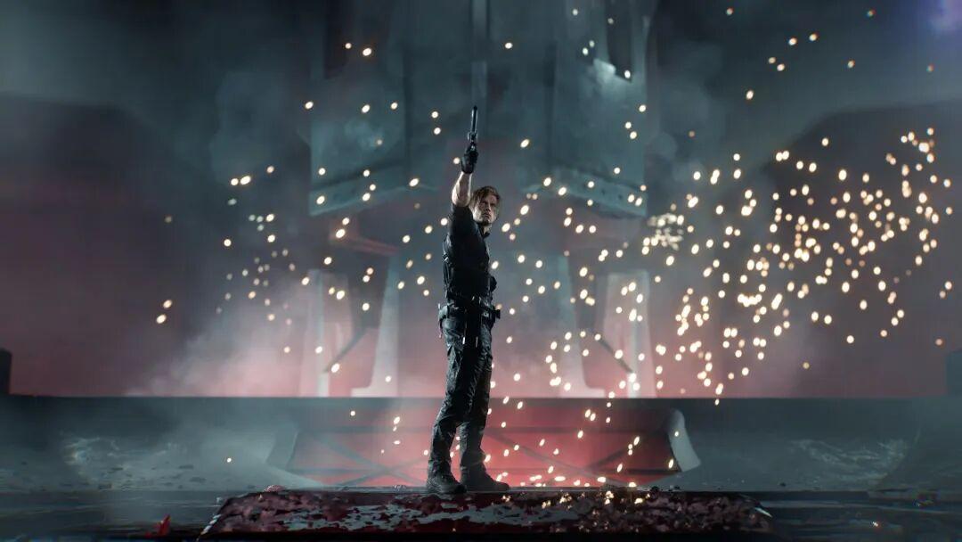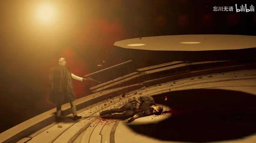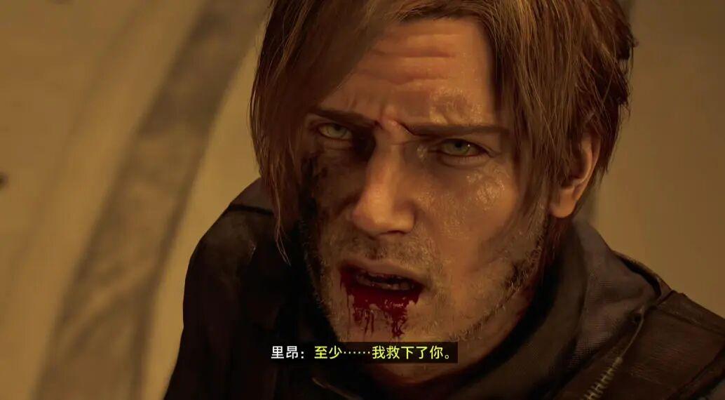 哪怕9代壞結局,也沒讓里昂塌房,這結局裏,里昂慘被爆頭。但這裏沒有高爾夫球杆,如果你調整攝像頭視角,會發現卡普空甚至把這不對外展示的一幕,做出了神聖的英雄謝幕感,簡直像一幅油畫。