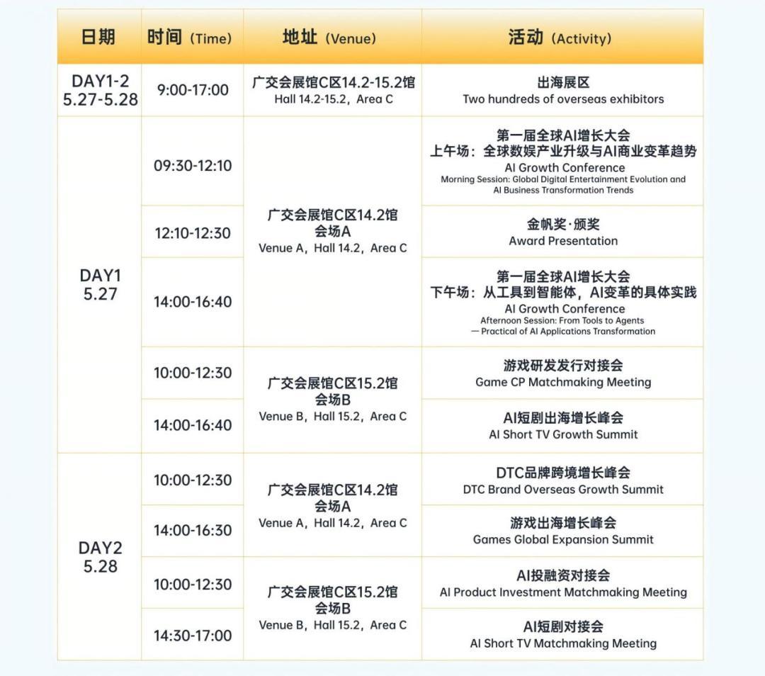 · 大咖雲集: 預計吸引35,000+出海精英,包含6,000+C級大咖及7,000+業務操盤手,打造一站式高質資源對接中樞;