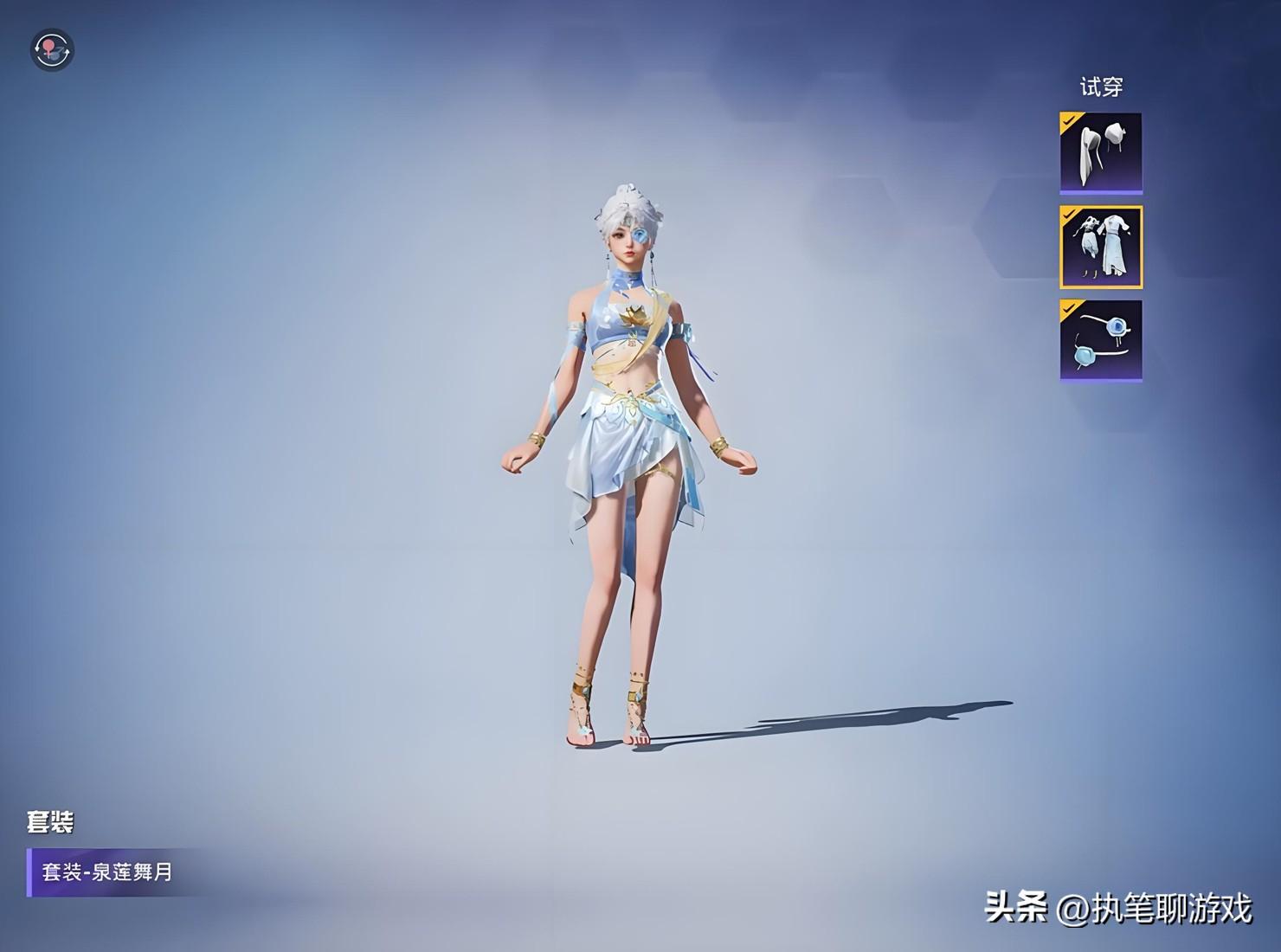 接下來出場的是第二個紫色等級的套裝,它被光子命名爲“泉蓮舞月”,從版型設定上來看的話,既有西域元素,又加入了古代舞服的細節設計,整體看起來還算是中規中矩吧~