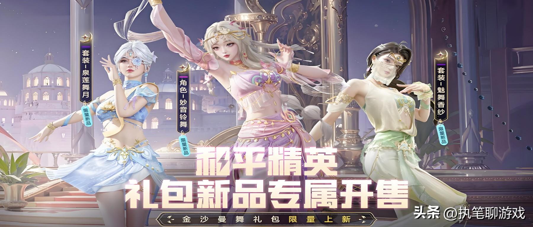 接下來出場的則是限定數量的系列,被光子命名爲“金沙漫舞”,在爲期3天的直售時間範圍內,每天限定數量2000份,它們分別被光子命名爲妙音鈴舞(角色)、泉蓮舞月(套裝)、魅舞香紗(套裝)。