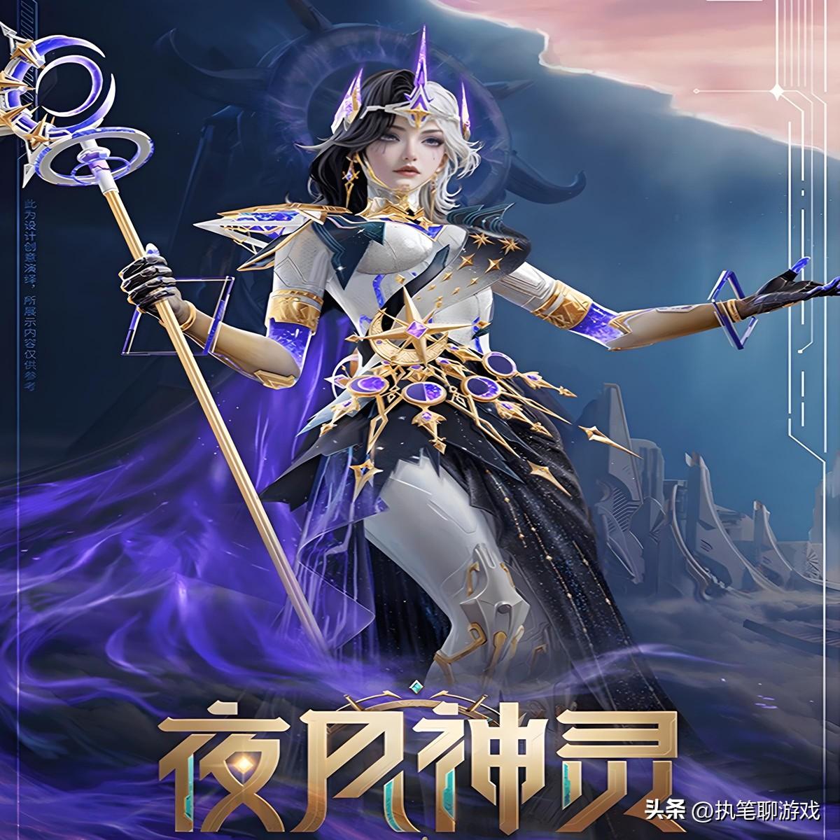 首先登場的是“夜月神靈”,這個角色最大的亮點是“黑白雙色”,長裙+機甲骨骼融合到一起,想要打造出暗夜女神的形象。
